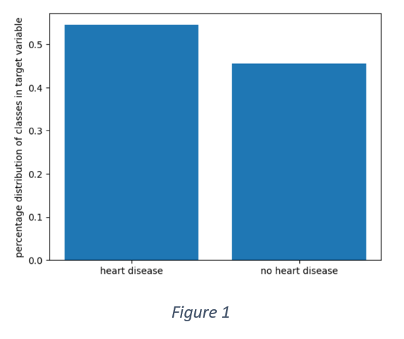 Figure 1 shows that the distribution of target variable is not perfectly balanced. More than 50% of the samples have positive labels. However, the data is not entirely imbalanced as the overall distribution is 55% and 45%.